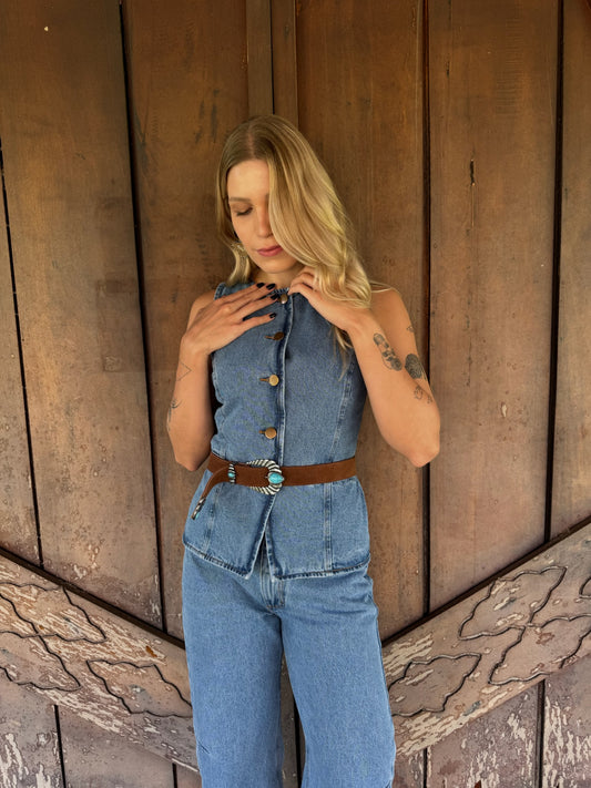 EsgotadoCinto Camurça Detalhes Turquesa
